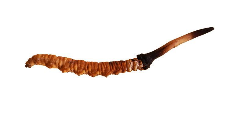 - 人工蟲草的草頭上下一樣粗,顏色較為單一,缺乏自然多樣性,漸變色不明顯,草頭基部沒有膨大,包不住蟲子頭部。